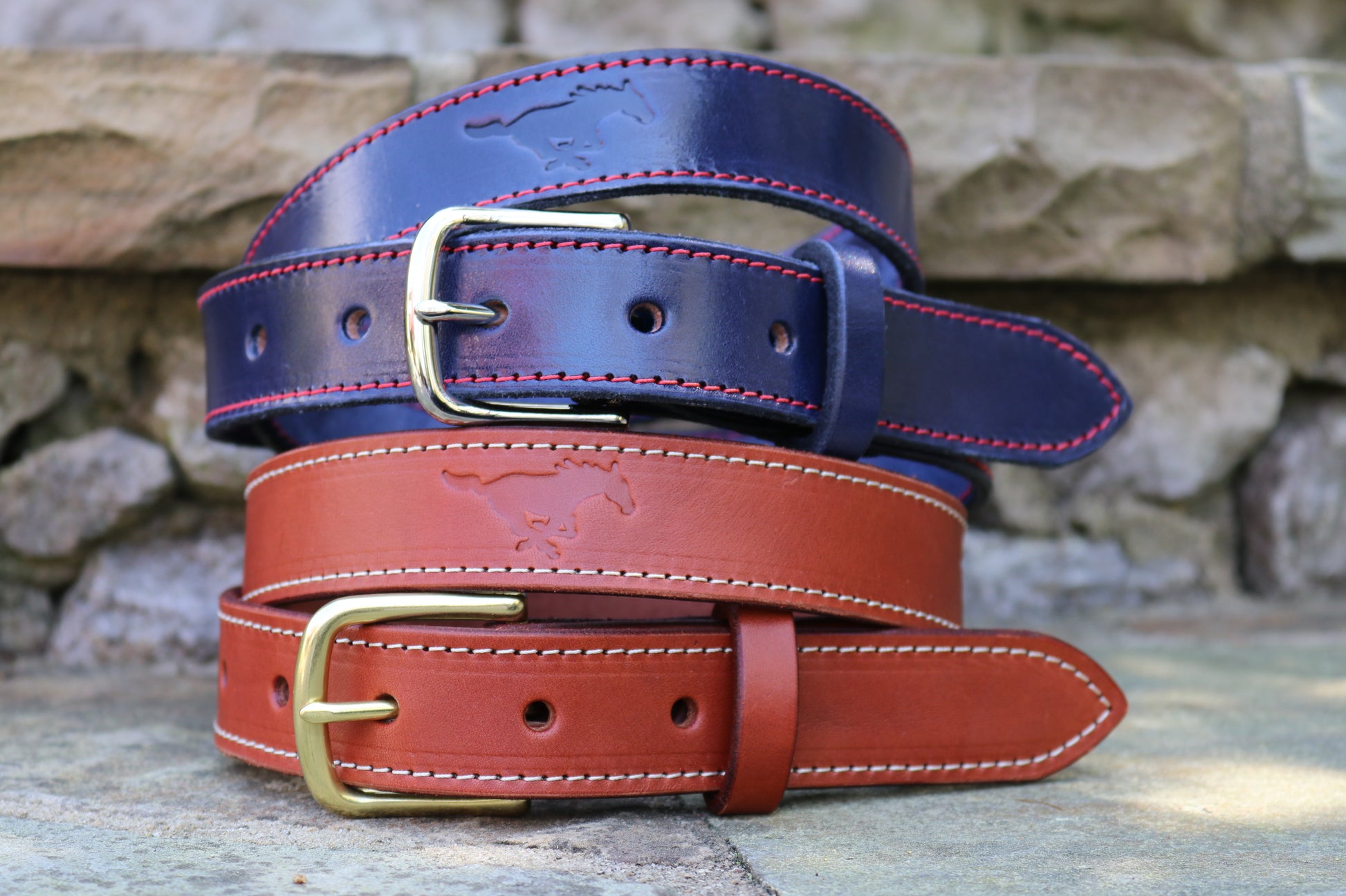 Crafted with full-grain leather and contrasting stitching, this handcrafted belt is made to order and designed to be long-lasting. It's the ideal accessory for alumni, students, and SMU Mustang fans alike. Featuring the mustang logo, this belt is made by hand in Matthews, NC. Its 1.25" width adds versatility to its style and durability.